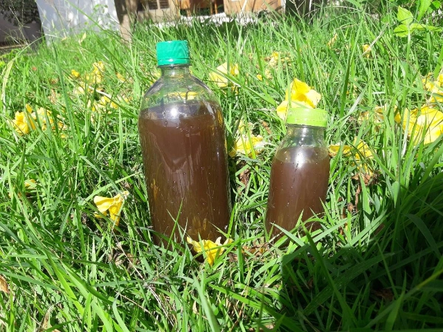Adicione em 100 litros de EM/solo, 1/2 litro de vinagre. Está pronto o EM/planta.